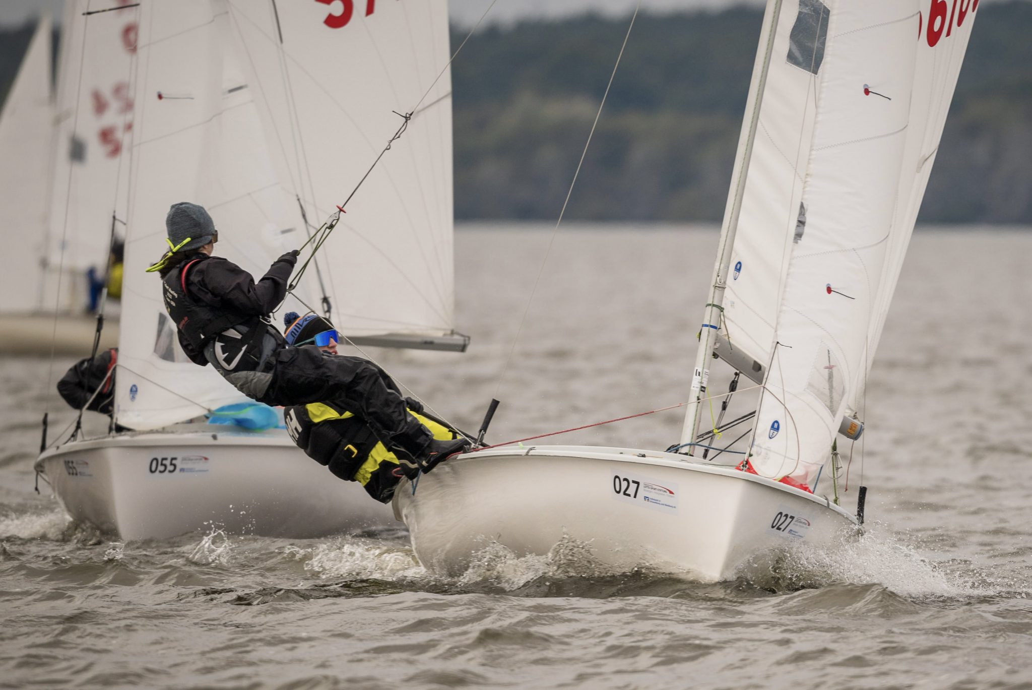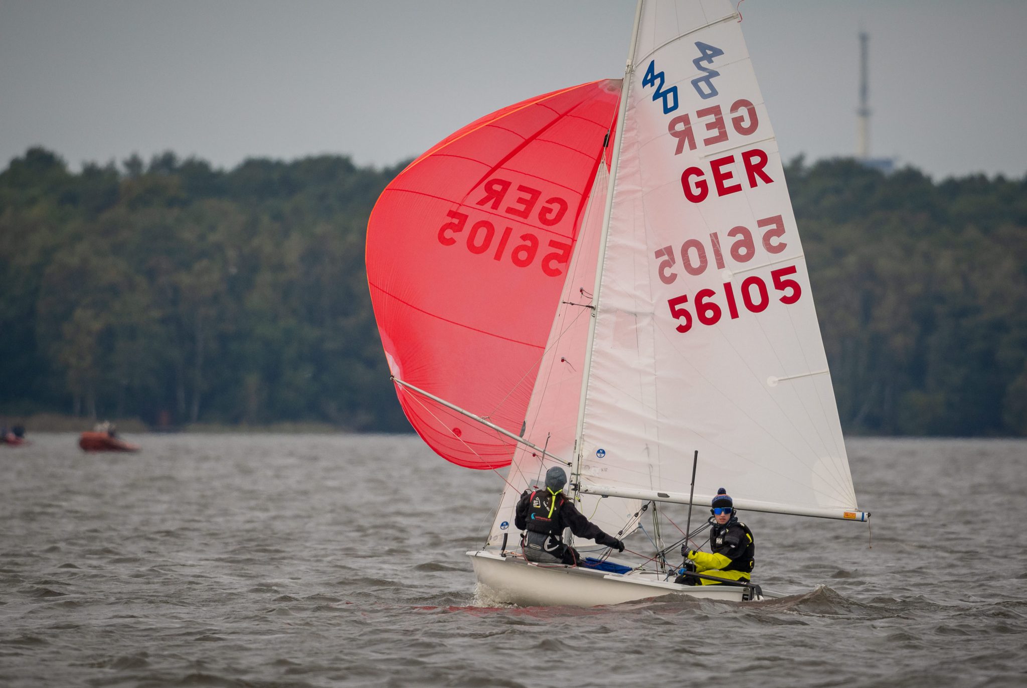 Die Internationale Deutsche Meisterschaft der 420er fand Anfang Oktober am Steinhuder Meer statt. Insgesamt waren rund 80 Teams am Start, die in zwei Gruppen segelten. Vor der ersten Wettfahrt mussten wir alle offiziellen Dokumente vorlegen und unser Boot sowie die Segel vermessen lassen. Zum Glück hatten wir rechtzeitig unseren Internationalen Bootsschein (IBS) vom DSV organisiert – das war ganz schön aufregend!